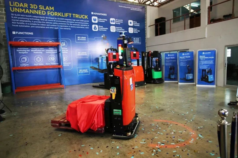 以泰国曼谷为据点的镭神智能东南亚办事处,历经7个月的筹备,现今厂房仓库和办公室等设施设备已准备就绪,镭神智能东南亚事业部即将投入运营。在3月18日,镭神智能东南亚事业部迎来正式的开业仪式,同时也启动了3D SLAM无人叉车在泰国的新品发布会。