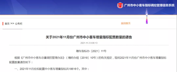 关于2021年11月份广州市中小客车增量指标配置数量的通告