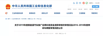 关于2019年度新能源汽车推广应用补助资金清算审核终审情况及2016-2018年度申诉车辆复审情况的公示