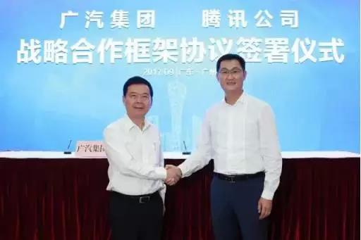 2017年9月18日,广州汽车集团股份有限公司(以下简称广汽集团)与深圳腾讯计算机系统有限公司(以下简称腾讯公司)在广州签订战略合作协议。广州市委副书记、市长温国辉,市委常委、常务副市长陈志英,市委常委、南沙区委书记蔡朝林,副市长、市政府秘书长叶牛平,腾讯公司董事会主席兼首席执行官马化腾,广汽集团董事长曾庆洪等出席协议签署仪式并见证签约,广汽集团常务副总经理吴松、腾讯公司腾讯云副总裁黄海清分别代表广汽集团和腾讯公司签署协议。