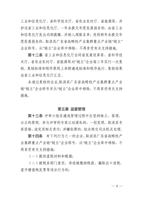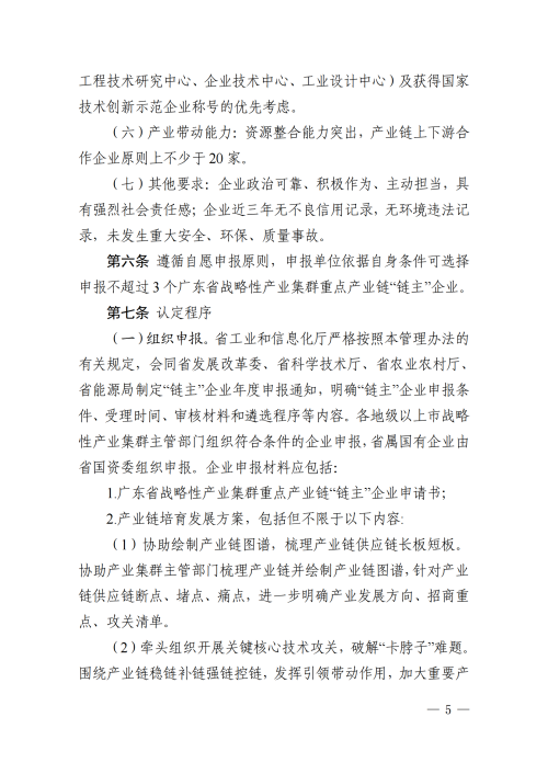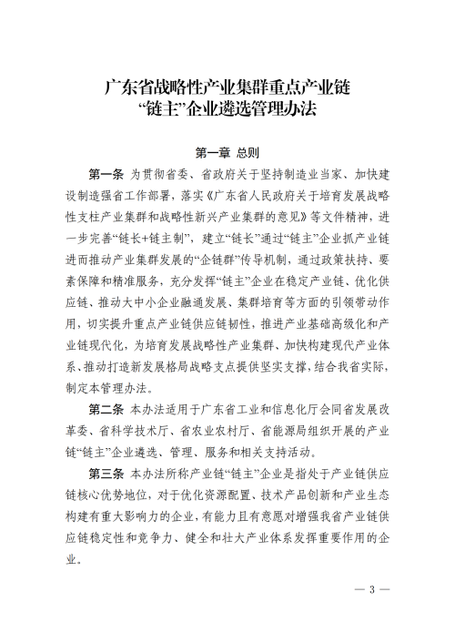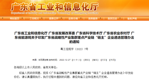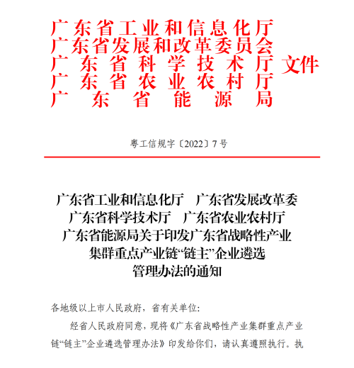 政策资讯 | 省工信厅等5部门:广东省战略性产业集群重点产业链“链主”企业遴选管理办法的通知