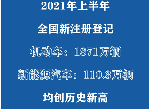 上半年新注册登记机动车1871万辆,创同期历史新高。2021年上半年,全国新注册登记机动车1871万辆,与去年同期相比增加457万辆,增长32.33%;与2019年上半年相比增加358.9万辆,增长23.74%,创同期历史新高。汽车新注册登记1414万辆,与去年同期相比增加372.5万辆,增长35.76%;与2019年上半年相比增加172.4万辆,增长13.88%。摩托车新注册登记426万辆,与去年同期相比增加93.2万辆,增长28.02%;与2019年上半年相比增加181.8万辆,增长74.53%。载客汽车保有量达2.52亿辆,私家车保有量达2.33亿辆。载客汽车保有量达2.52亿辆,其中以个人名义登记的小微型载客汽车(私家车)达2.33亿辆。2021年上半年,新注册登记载客汽车1159万辆,与去年同期相比增加315.5万辆,增长37.40%;与2019年上半年相比增加102.8万辆,增长9.73%。载货汽车保有量达3191万辆,新注册登记量创历史新高。载货汽车保有量达3191万辆,占汽车总量的10.91%。2021年上半年,新注册登记载货汽车达242万辆,与去年同期相比,增加54.6万辆,增长29.12%;与2019年上半年相比,增加67.4万辆,增长38.53%,再创历史新高。危险货物运输车保有量达65.7万辆,较去年同期增加5.3万辆,增长8.76%。新能源汽车保有量达603万辆,上半年新注册登记110.3万辆。截至6月底,全国新能源汽车保有量达603万辆,占汽车总量的2.06%。其中,纯电动汽车保有量493万辆,占新能源汽车总量的81.68%。上半年新注册登记新能源汽车110.3万辆,与去年同期相比增加77.4万辆,增长234.92%;与2019年上半年相比增加47.3万辆,增长74.94%,创历史新高。新能源汽车新注册登记量占汽车新注册登记量的7.80%。74个城市汽车保有量超过100万辆,北京、成都等18个城市超过300万辆。截至6月底,全国有74个城市的汽车保有量超过100万辆,同比增加5个城市,33个城市超过200万辆,18个城市超过300万辆。其中,北京汽车保有量超过600万辆,成都、重庆汽车保有量超过500万辆。苏州、上海、郑州汽车保有量超过400万辆。机动车驾驶人数量达4.69亿人,上半年新领证驾驶人1390万人。全国机动车驾驶人数量达4.69亿人,其中,汽车驾驶人数量为4.31亿人,占驾驶人总数的92.00%。2021年上半年,全国新领证驾驶人数量1390万人,与去年同期相比增加662万人,增长90.93%;与2019年上半年新领证驾驶人数量基本持平。其中60岁以上的驾驶人1657万人,与去年同期相比增加233万人,增长16.36%。网上办理车辆和驾驶证业务4445万次,同比增长92.99%。