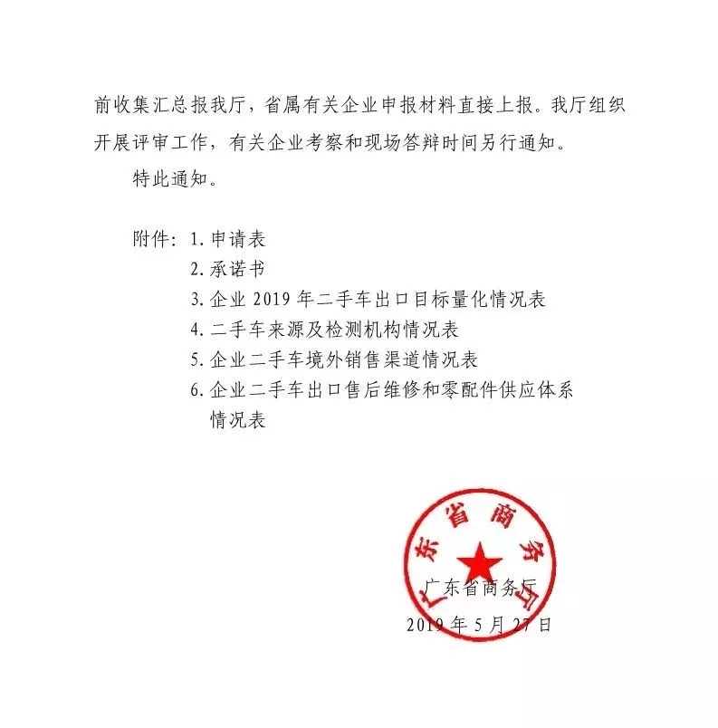 - 广东省商务厅公示首批开展二手车出口业务企业