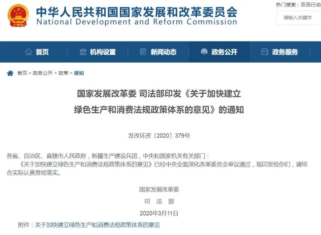 两部门印发《关于加快建立绿色生产和消费法规政策体系的意见》