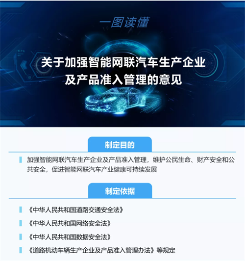 近日,工业和信息化部发布了《关于加强智能网联汽车生产企业及产品准入管理的意见》(以下简称《意见》),现就《意见》有关内容解读如下: