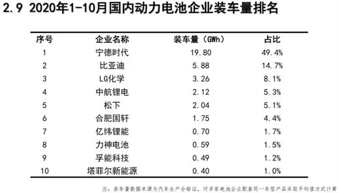 1-10月,我国新能源汽车市场共计66家动力电池企业实现装车配套,较去年同期减少4家,排名前3家、前5家、前10家动力电池企业动力电池装车量分别为28.9GWh 、33.1GWh 和37GWh,占总装车量比分别为 72 .2%、82 .6%和92 .4%。
