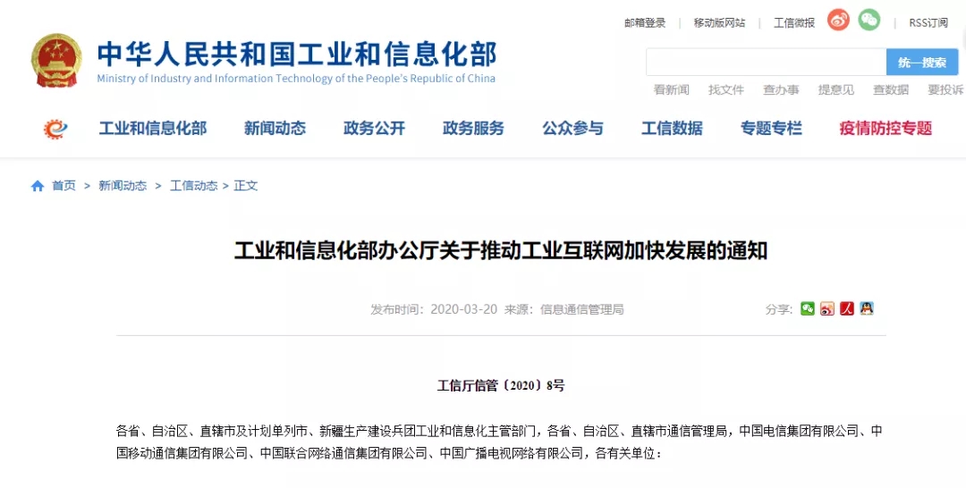 工信部发文推动工业互联网加快发展 含六方面20项措施