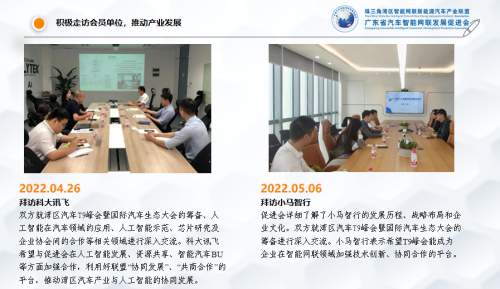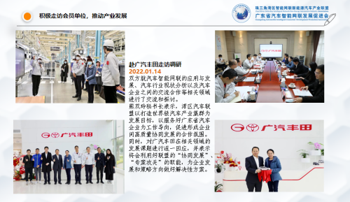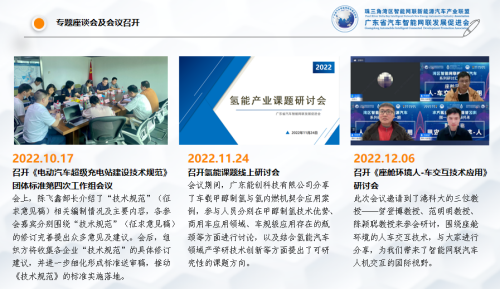 致谢每一份厚爱,感恩湾区汽车联盟每一个会员企业,在您们的鼎力支持和高度信任下,我们建立融合共生的珠三角湾区“汽车人”生态圈,配合相关政府部门完成了:一是湾区汽车联盟作为省、市汽车战略性产业集群的支撑服务机构,发挥联盟优势,联合核心会员企业,协助完成省、市政府相关部门汽车支撑服务工作,完成了广东省产业运行分析报告、行业汇编、前沿技术专题报告、《广东省新能源汽车产业报告(2022)》(蓝皮书)、《广东智能网联汽车产业报告(2022)》(蓝皮书)、《广东氢燃料电池汽车产业报告(2022)》(蓝皮书)、《广东省零部件深调研报告(2022)》(蓝皮书)和《广州二手车出口发展(2022)》(蓝皮书)等 30多万字;编制了“三头六臂”产业图谱;完成《电动汽车超级充电站建设技术规范》《自动驾驶运营调度标准》《自动驾驶公交运营安全管理标准》《自动驾驶公交车辆维保标准》团体标准、争取了工信部“5G+车联网”、完成了科技部4项专利和6项软件著作权的申请、开通了广州塔线、生物岛1线、生物岛2线、琶洲大环线50辆自动驾驶小巴和8台远程自动驾驶便民线;二是发挥湾区汽车联盟“T9+N”、秘书长联席会议和八大专业委员会,联合组织开展 “2022湾区汽车T9(闭门)峰会暨国际汽车生态大会”、汽车产业前瞻研讨会、新能源智能网联汽车关键技术职业技能竞赛、“粤造粤强 粤车贸全国”汽车品牌直播大联展活动、连续两年组织会员企业参展南宁东盟博览会,推出“粤车贸全球”等品牌活动,助力汽车消费,激发市场活力。三是积极走访会员企业,先后拜访了广汽集团、比亚迪、腾讯、科大讯飞、百度阿波罗、中国质量认证中心广州分中心等会员企业,听取会员需求,提升会员服务。