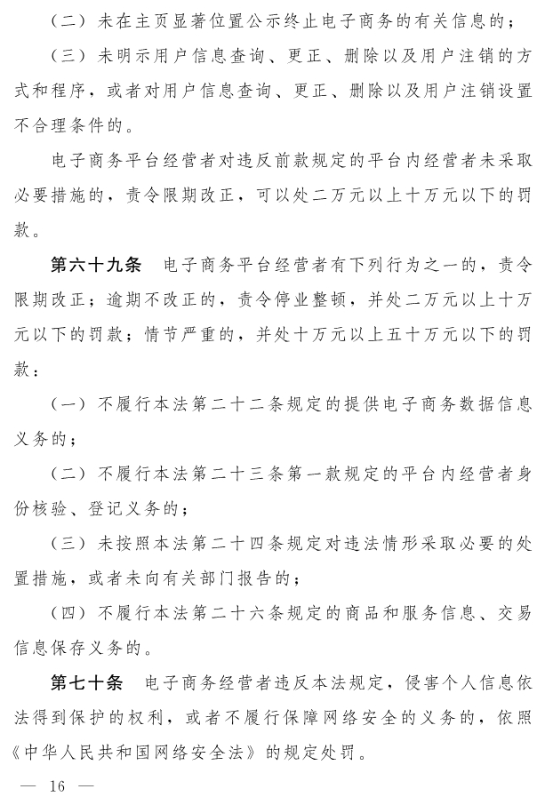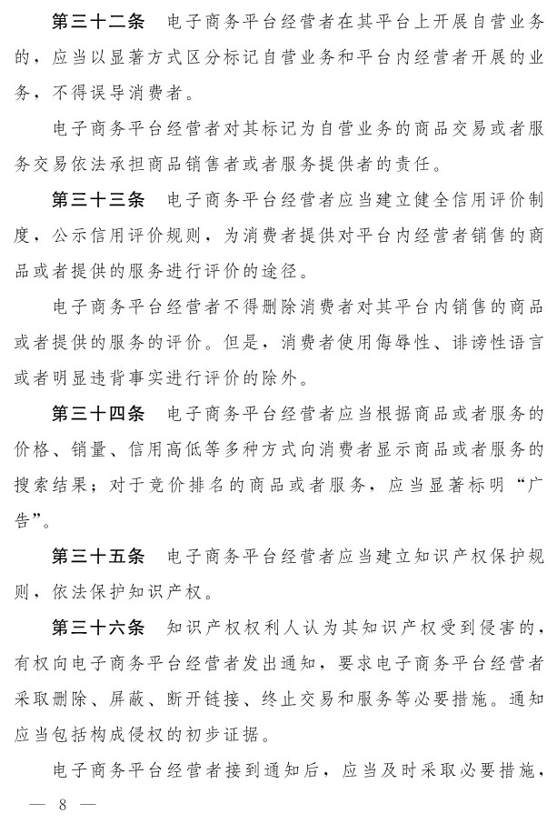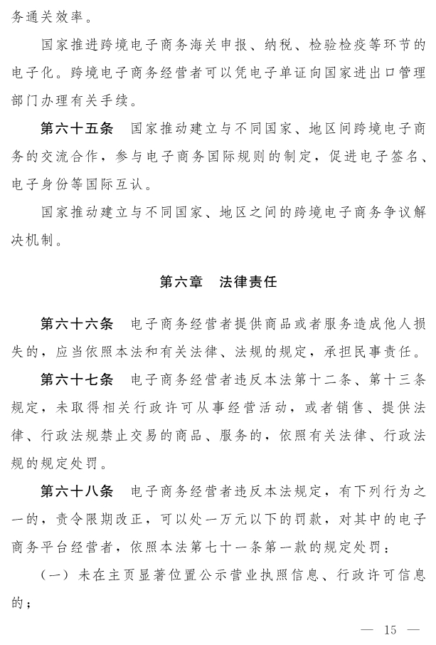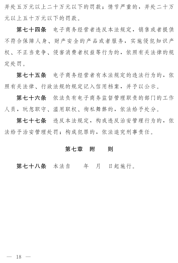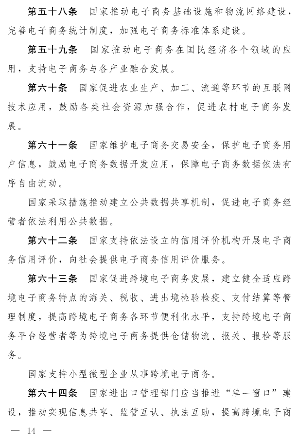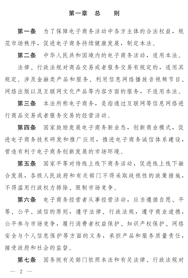 以下为《中华人民共和国电子商务法(草案二次审议稿)》内容