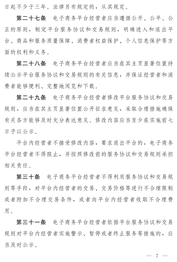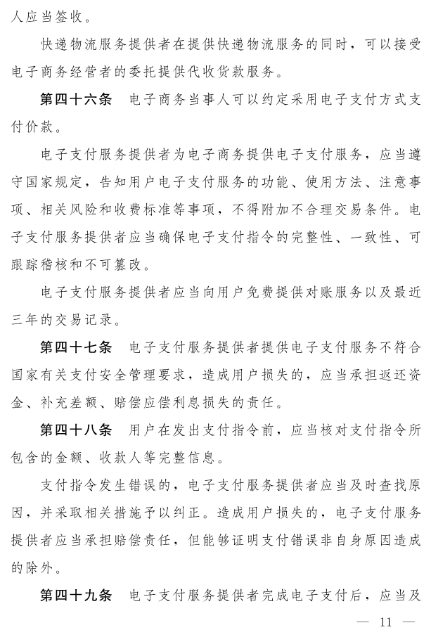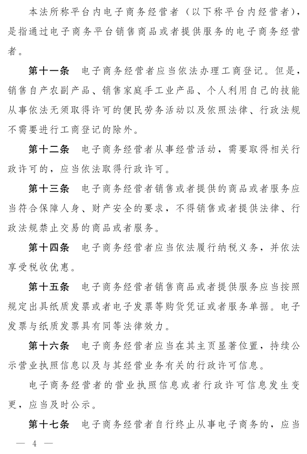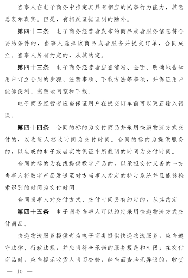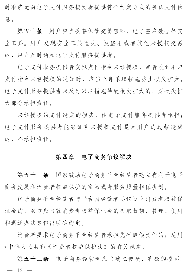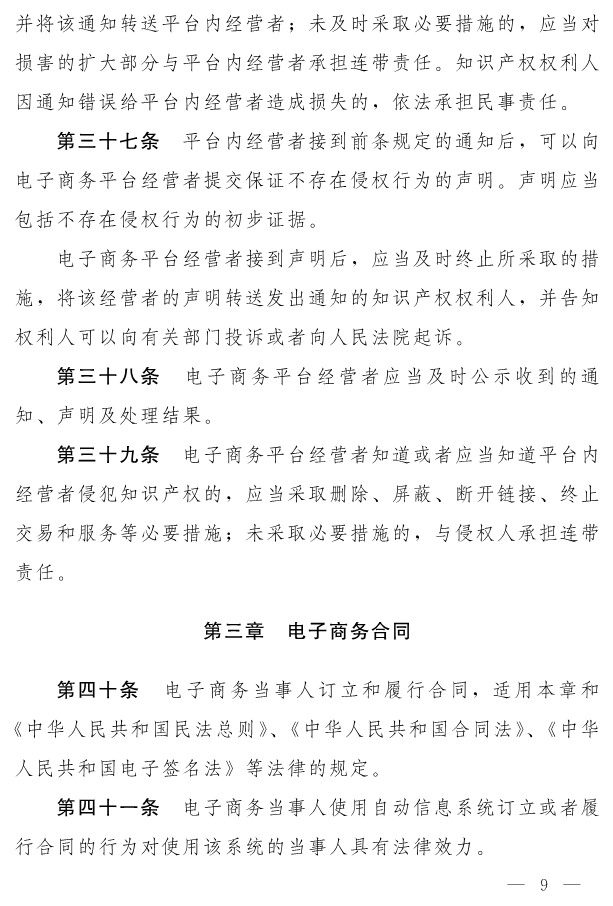 以下为《中华人民共和国电子商务法(草案二次审议稿)》内容