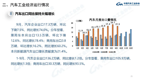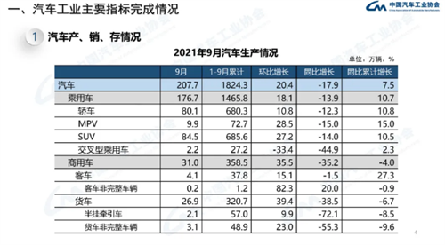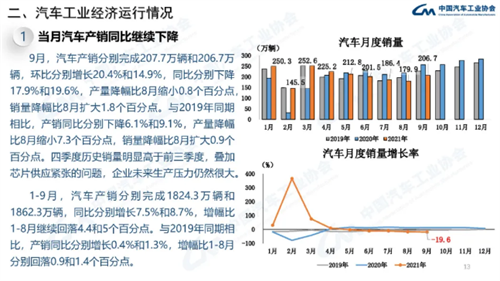 2021年9月汽车工业经济运行情况