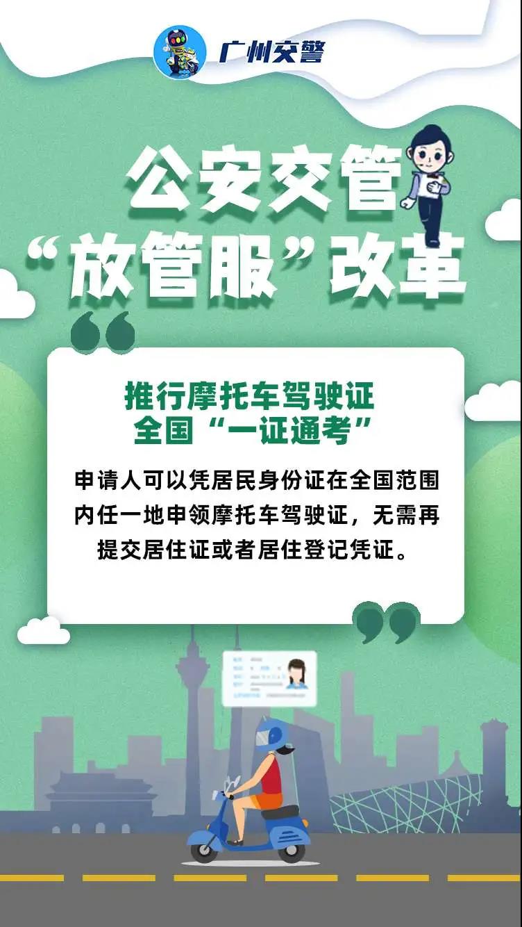措施内容:申请人可以凭居民身份证在全国范围内任一地申领摩托车驾驶证,无需再提交居住证或者居住登记凭证。