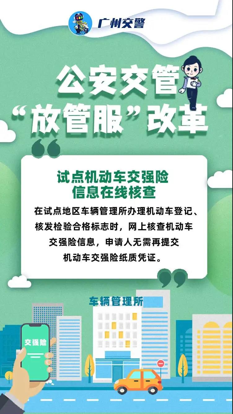 措施内容:推进公安交通管理部门与银保监部门机动车交强险信息共享,在试点地区办理机动车登记、核发检验合格标志时,车辆管理所网上核查机动车交强险信息,申请人无需再提交机动车交强险纸质凭证,进一步简化办理机动车登记等手续。在试点基础上,全国逐步推行。