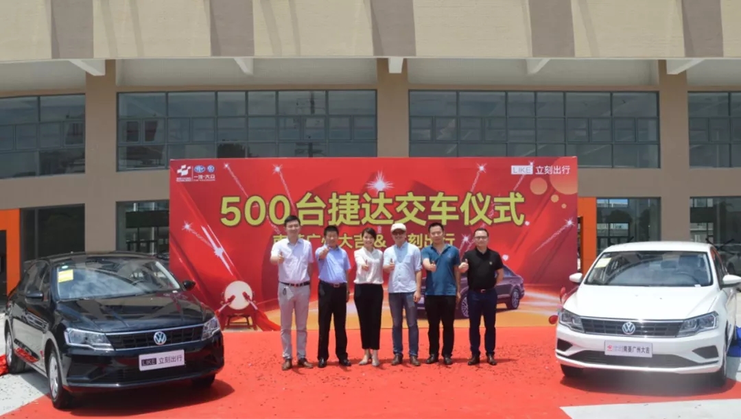 5月30日,南菱大众白云店于佛山锦源二手车交易市场举行了隆重的交车仪式,500台一汽-大众捷达郑重交至立刻出行手中。