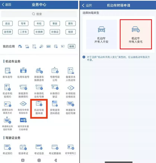 (一)对二手车在转入地交易的,可以通过公安交通管理互联网服务平台(“交管12123”手机APP或者互联网网站www.122.gov.cn)提出申请,也可以直接到转入地车辆管理所业务窗口提出申请。