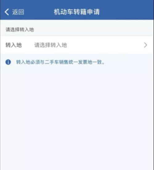 对二手车在转入地交易的,现机动车所有人可以通过公安交通管理互联网服务平台向转入地车辆管理所提出申请车辆跨辖区转移登记。申请前,应当认真阅读“业务须知”,确认机动车是否符合转入地相关规定,按照提示录入申请信息。