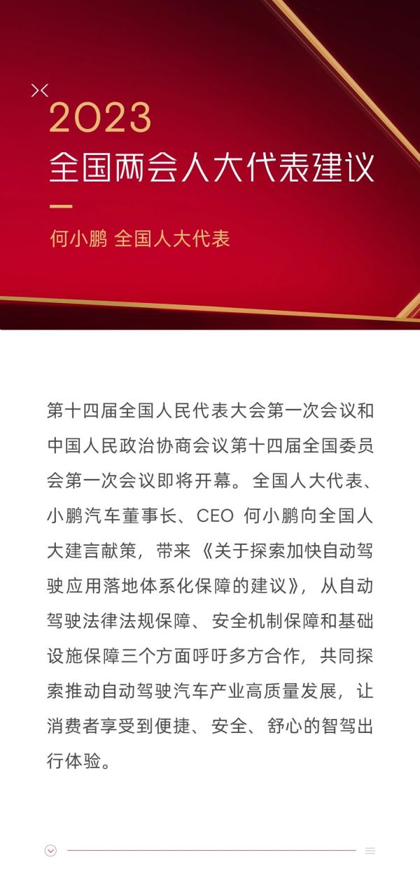 副会长单位动态 | 何小鹏两会建议:探索加快自动驾驶应用落地体系化保障